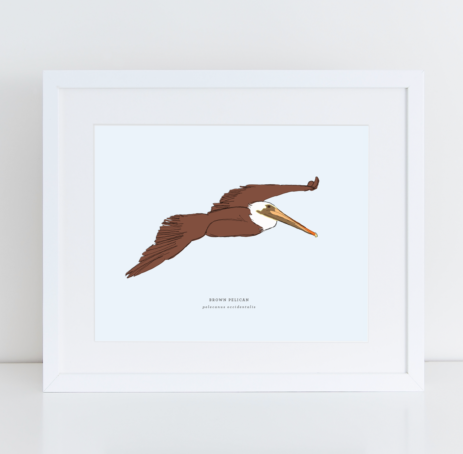 Show your love for the Gulf Coast with this soaring brown pelican.