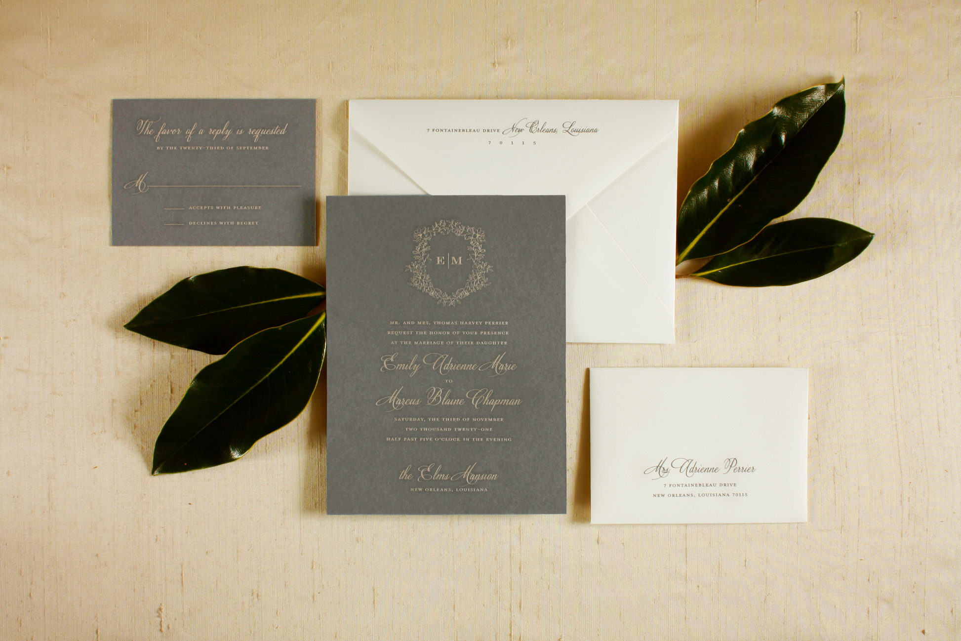 A NOD TO THE MOST BEAUTIFUL FLOWERS IN THE SOUTH... A MAGNOLIA CREST SURROUNDS A SIMPLE MONOGRAM.